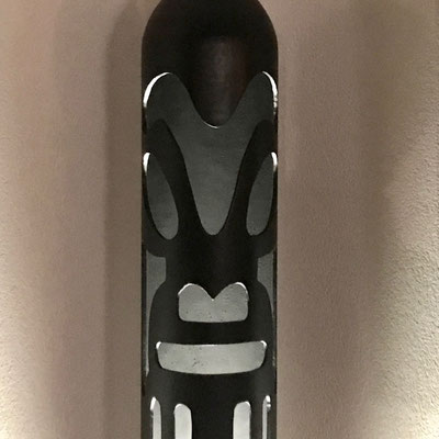 Le métal a été découpé dans l'esprit des sculptures Tiki. La symbolique de la force a été choisie pour protéger les habitants de la maison.